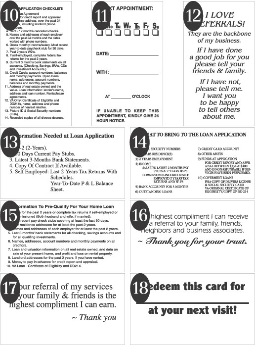 We offer the following standard back printing for your business cards. When ordering, please indicate the standard back number on the order form where indicated.